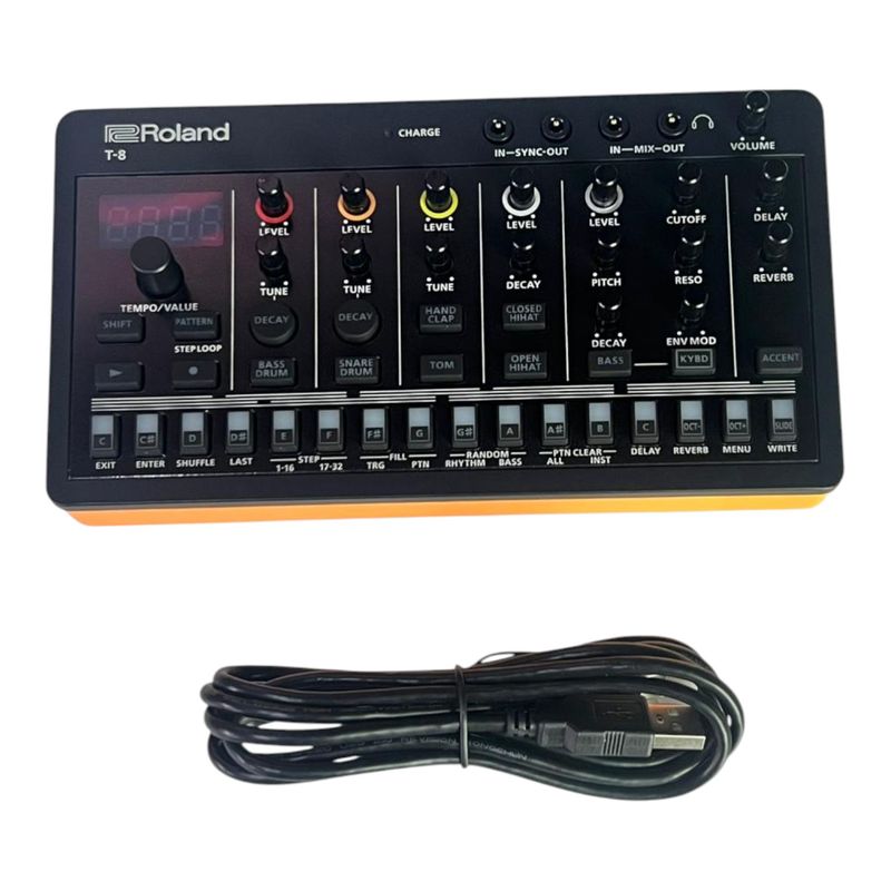 A Roland T-8 Beat Machine é uma poderosa fábrica de ritmos em formato compacto, reunindo os timbres lendários das baterias TR-808, TR-909 e TR-606, além do clássico baixo inspirado no TB-303. Ideal para produtores e performers, a T-8 permite criar faixas instantaneamente com seu sequenciador intuitivo de 16 passos, controles integrados para modelagem de som e efeitos como delay, reverb, overdrive e side chain. Baseada na tecnologia Analog Circuit Behavior (ACB), a mesma presente em equipamentos AIRA profissionais; ela oferece o som autêntico que definiu décadas da música eletrônica, do acid house ao trap moderno.